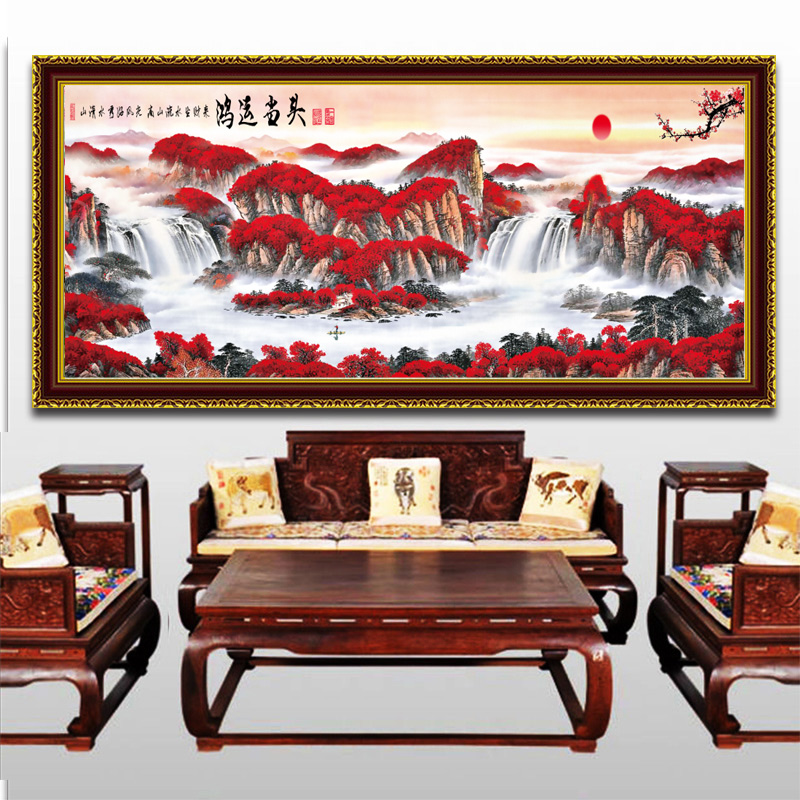 Mona Lisa printed cross stitch embroidery line embroidered new living room sharply full embroidered landscape landscape painting flowing water raw and rich embroidery