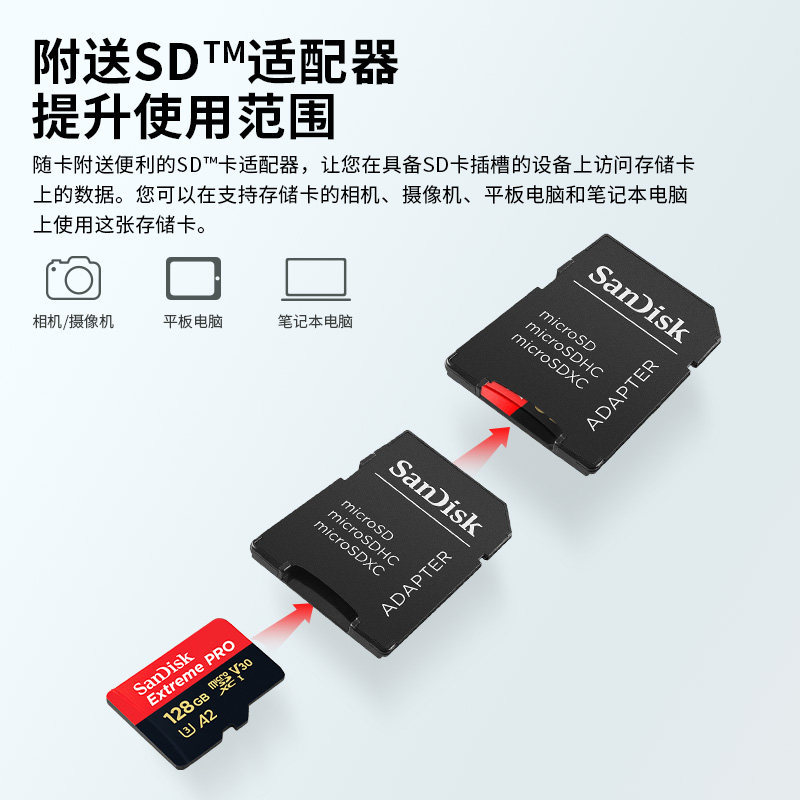 SanDisksd card 128g memory card high speed mobile phone tf card switch memory card Drone gopro action camera tachograph monitoring sd card 128g