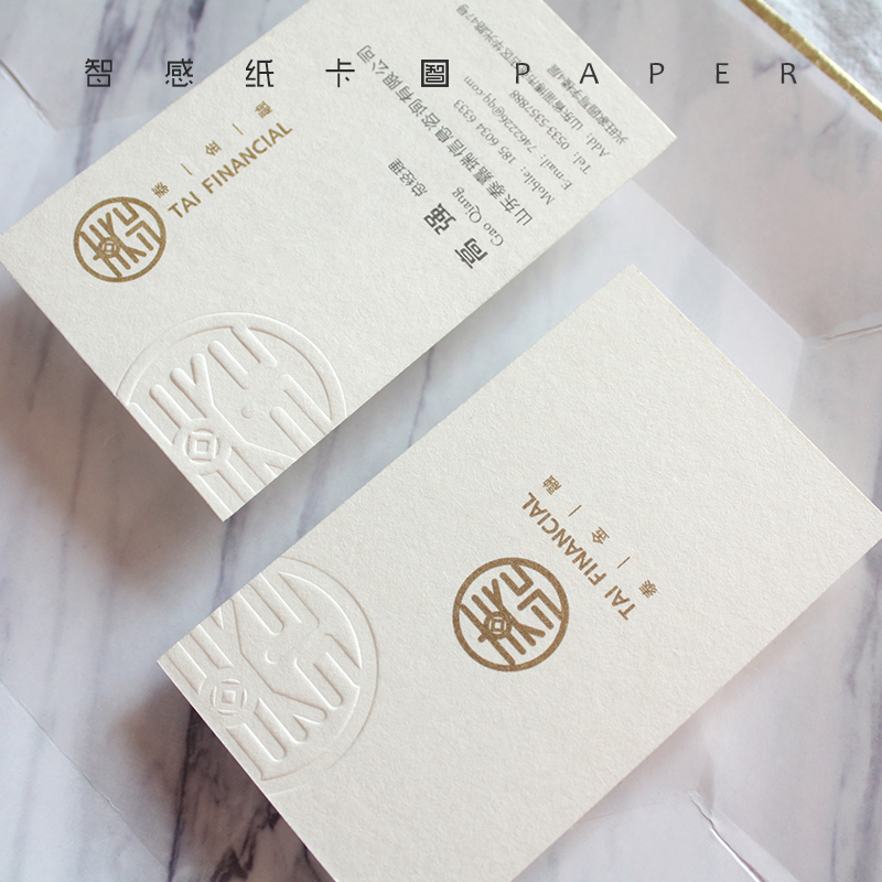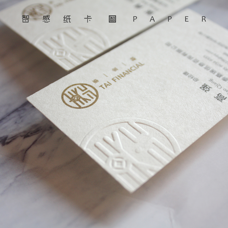 Financial information technology consulting management company upscale business card production printing rugged steel print indentation process