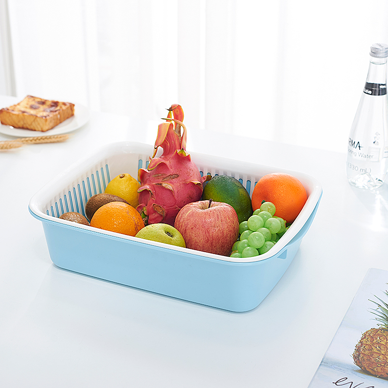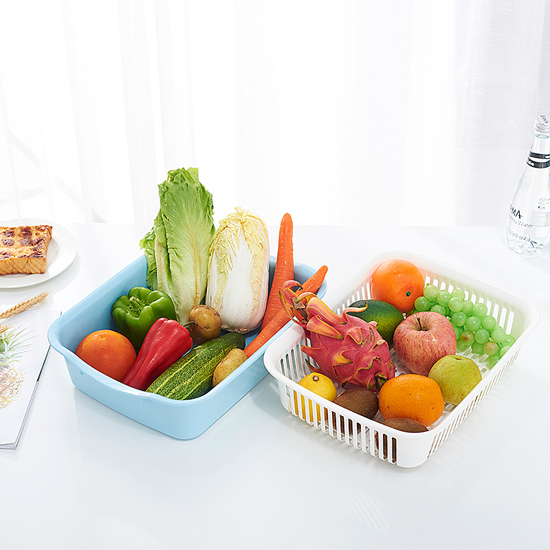 Kitchen plastic drain basket Large washing basket Rectangular thickened fruit and vegetable basket Double layer dish rack creative fruit basin