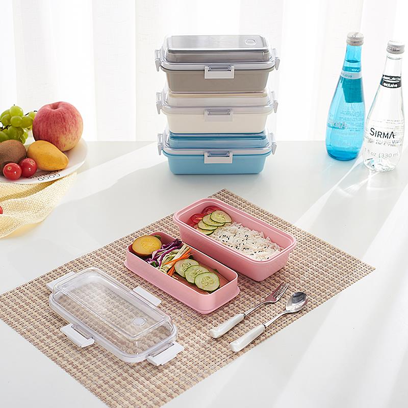 Lunch box new creative cute double-layer thickened lunch box with lid rectangular plastic lunch box can be microwaved