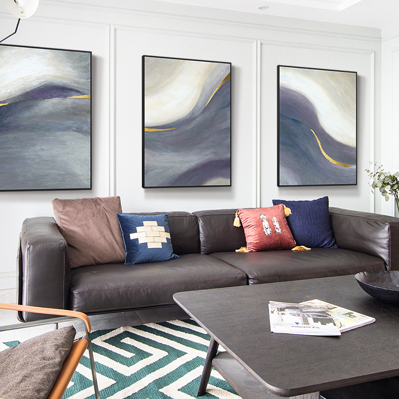 Light Extravaganza Living-room Real Gold Leaf Decoration Painting Modern Minimalist Sofa Background Wall Triple Hang Painting into the Mural of the family