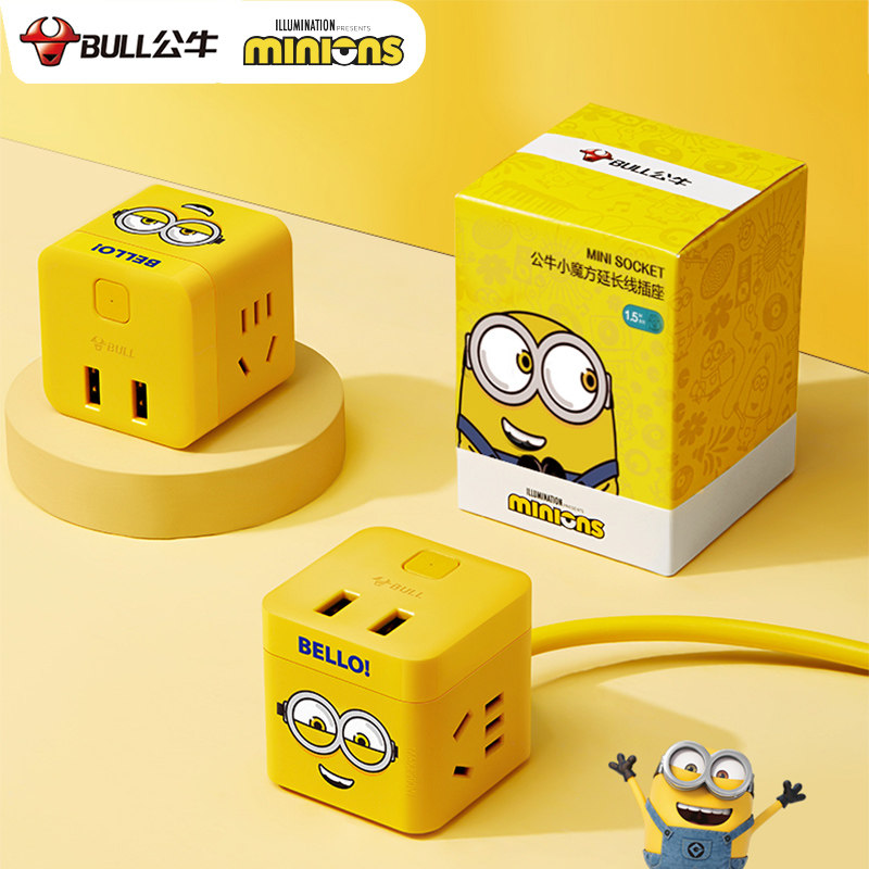 Bull Small Yellow Man Cube Socket With Usb Charging Socket Shifter Cute Teenage Girl Platoon Ultra Slim Extension Cord