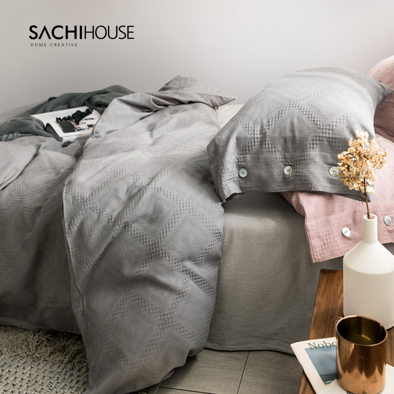 Nordic four-piece set of pure cotton pure color simple bed linen quilt cover spring and autumn long-staple cotton 4-piece bedding