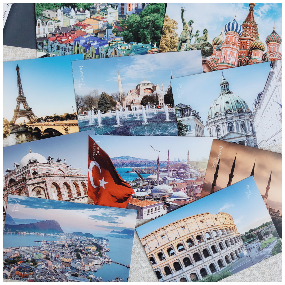 Light grey sky blue coffee color red chocolate color blue 36 sheets traveled all over the world for third season tour around the world (60 sheets) postcard world famous school TOP100 (English version)