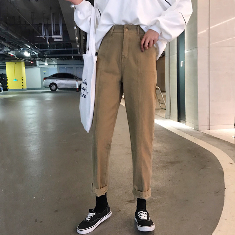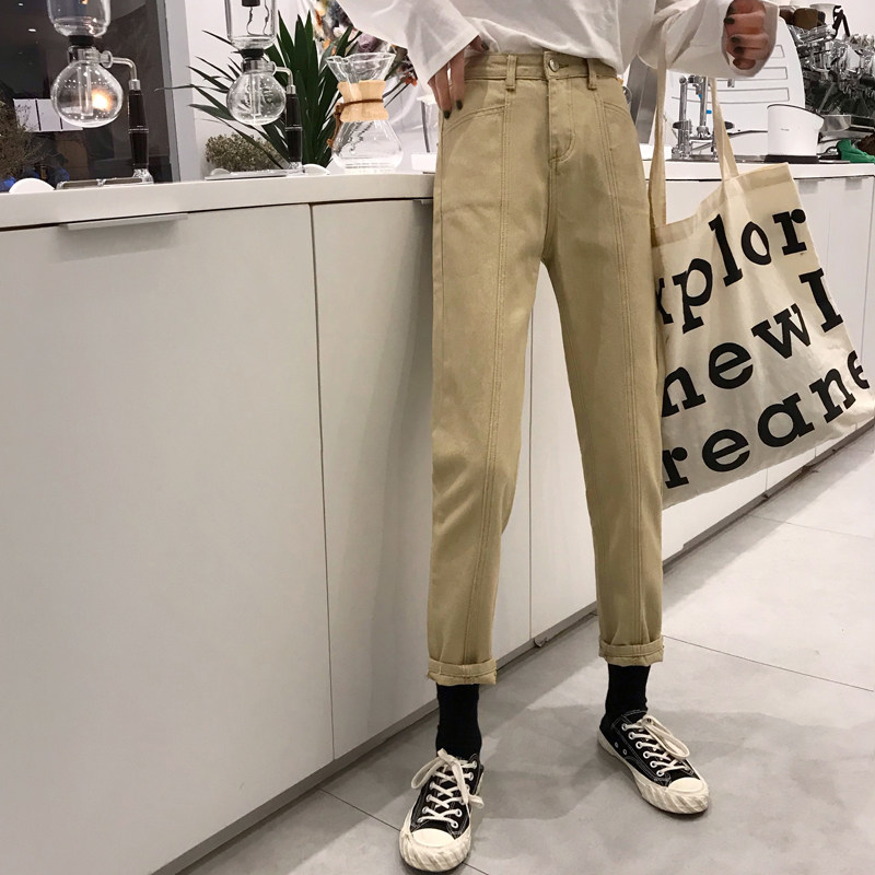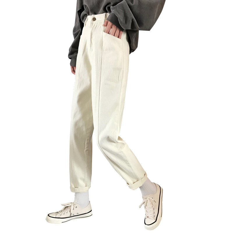 100 lap black Korean version with high waist display slim white jeans student pants loose trend straight drum pants 90% pants female