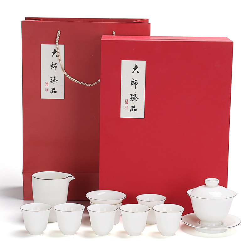 Sketching White Porcelain China White Office Home Ceramic Tea Set Group Cover Bowl Cup Tea Cup Logo Gift Box Booking