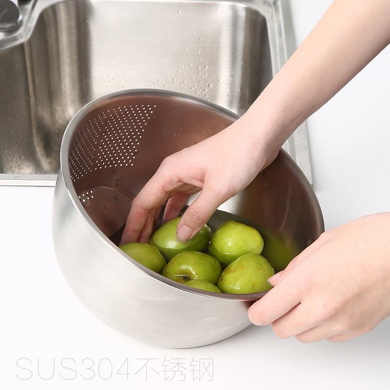 Household 304 stainless steel fruit and vegetable basket washing rice artifact drain blue washing vegetable basket rice washing machine washing rice sieve kitchen leaking basin