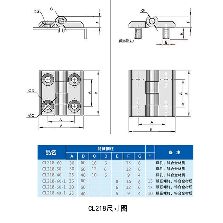 CL218-50 Black Countersunk hole CL218-50-1 Black Belt foot CL218-50 Bright light countersunk hole CL218-50-1 Bright light belt foot