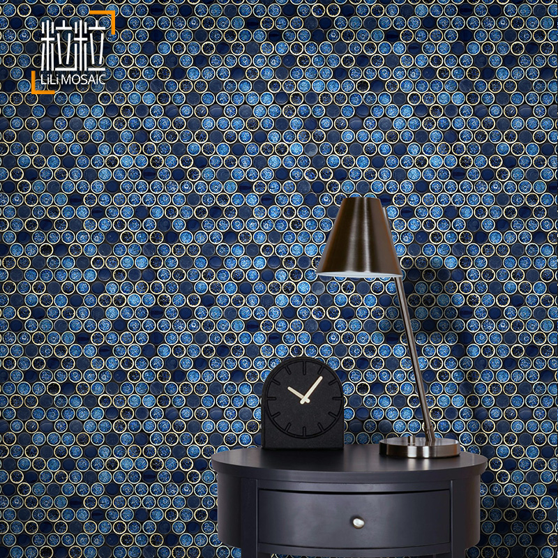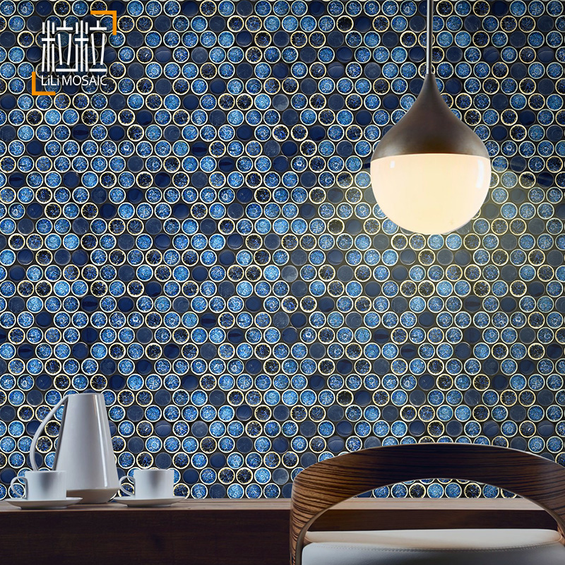 Round Glass Mosaic Kilns Porcelain Vintage Tiles Makeup room Bathroom Background Wall Classical TV Background