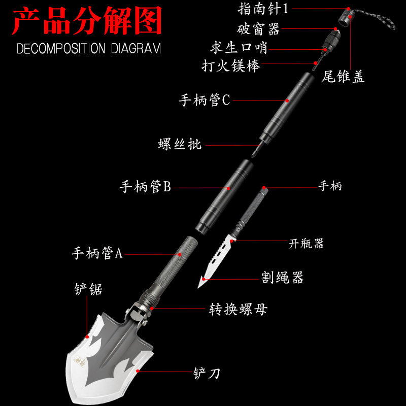 Ordnance engineering shovel manganese steel German engineering shovel China outdoor equipment multifunctional military version original folding shovel