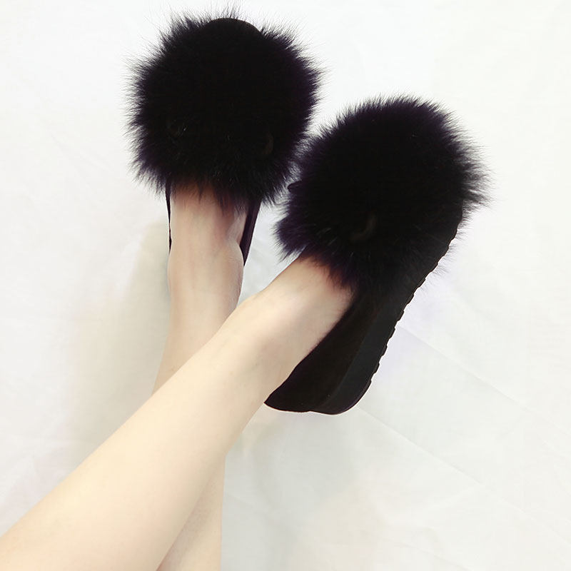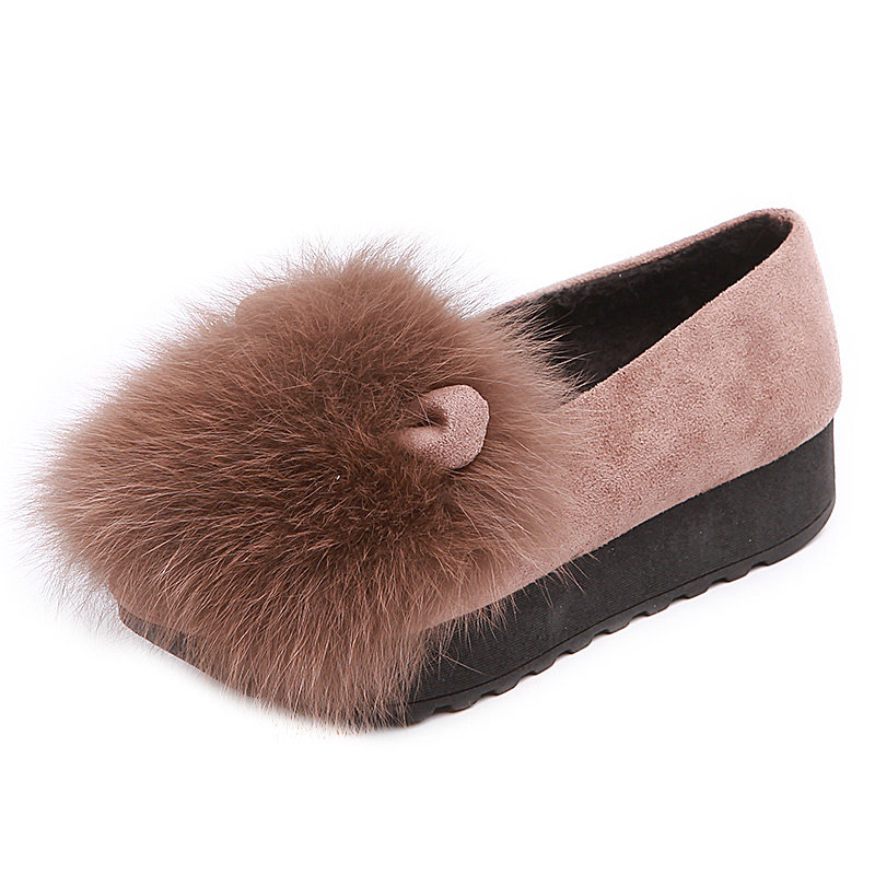 Europe station fox fur shoes women's spring autumn Korean version 2022 new one foot pedal plus suede single shoes thick bottom bean-bean shoes