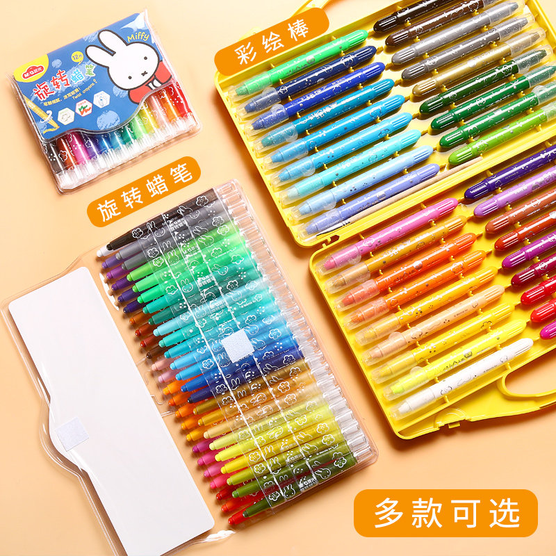 Morning light rotating crayon 48 colors 24 colors Children's safe and non-toxic kindergarten crayon set Brush color stick Baby graffiti painting brush color pen is not easy to break oil painting stick painting stick