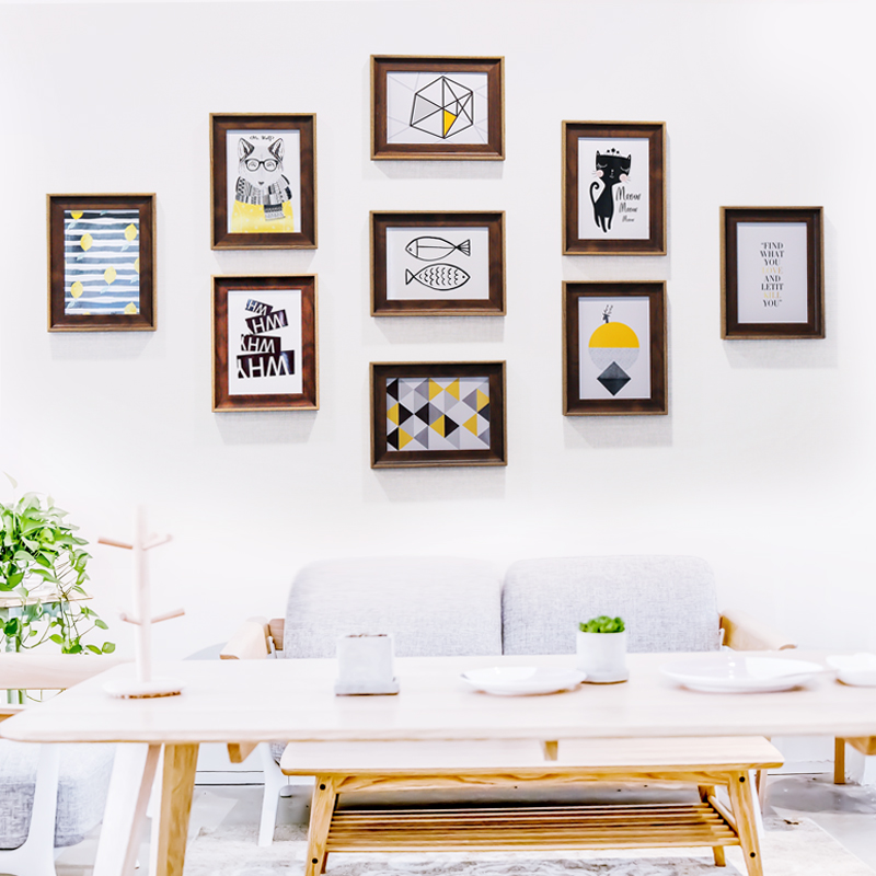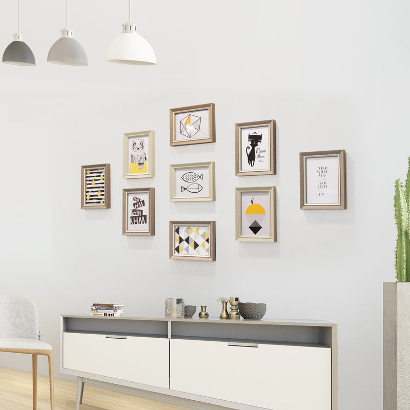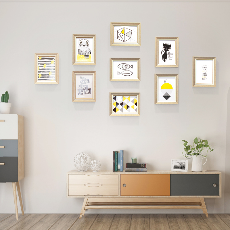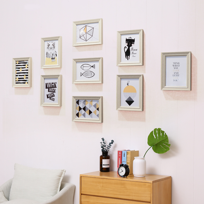 ins wind Nordic combination photo wall Nine grid 7 inch 9 frame photo frame wall Bedroom living room decorative picture frame free punch