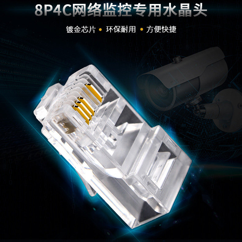 8P4C three-pronged crystal head 100 boxes Super five unshielded crystal head 100 boxes Super five shielded crystal head 100 boxes Six gigabit unshielded crystal head 1
