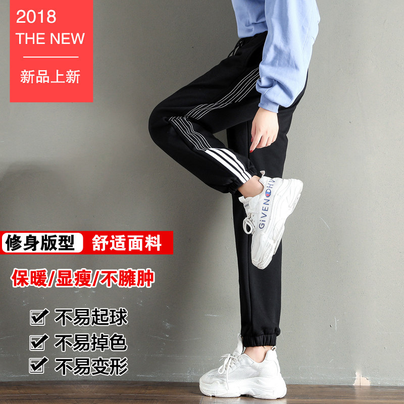 Autumn Winter Plus Suede Sports Pants Women Small Feet Casual Pants Student Han Edition Loose large size Thickened Conspicuy Warm Sweatpants