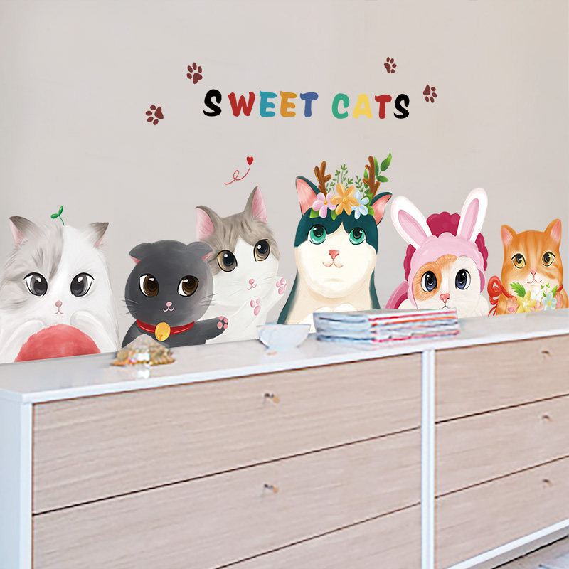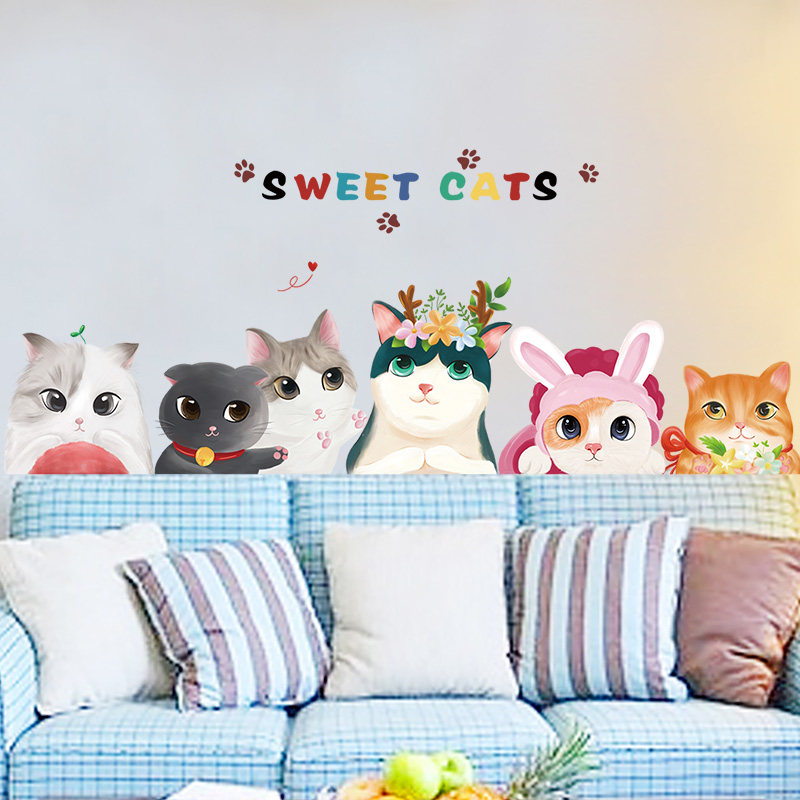 Living room sofa wall room creative warm bedroom bedside decoration wallpaper self-adhesive cute cat wall sticker