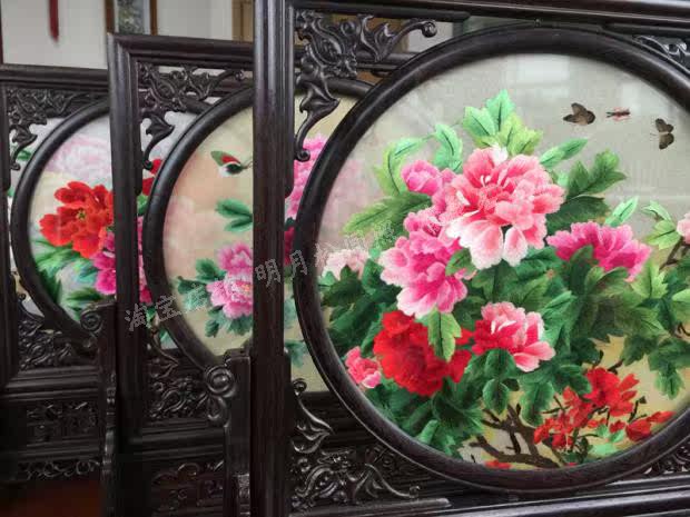 Hubei characteristic Han embroidery screen decoration gift peony design Han embroidery screen folk pure handmade embroidery gift
