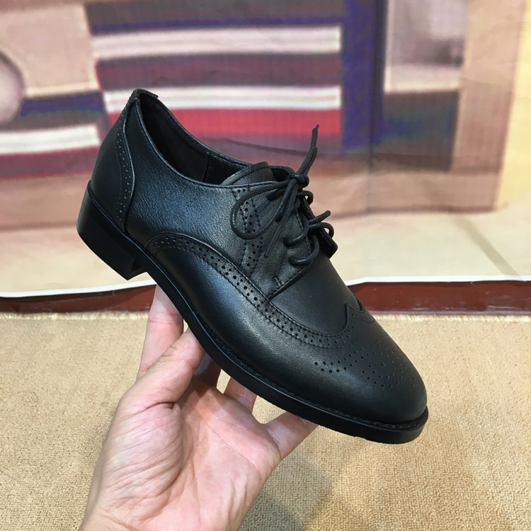 Withdrawal of the cabinet and broken size leather women's shoes for autumn and winter plus velvet leather lace-up flat-heeled British style single shoes black small leather shoes
