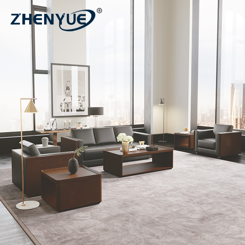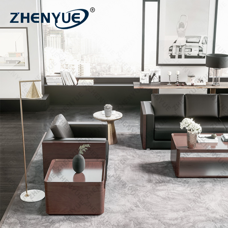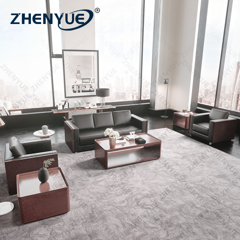 Boss Office VIP Reception Room Business Meeting Simple Leather Office Sofa Coffee Table Combination Set