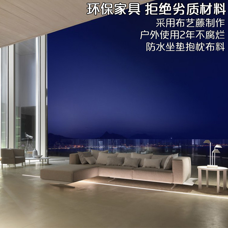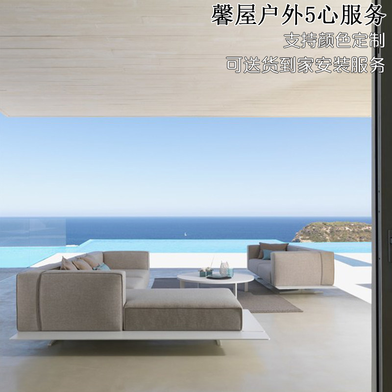 Outdoor rattan sofa Nordic fabric courtyard waterproof leisure swimming pool coffee table combination aluminum tube latex outdoor sofa