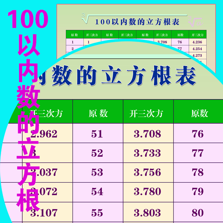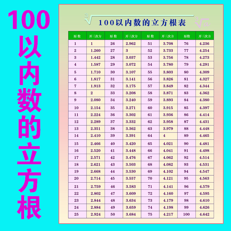 More than 100 square root cubic root wall map digital Kaifang Formula primary school students maths wall stickup