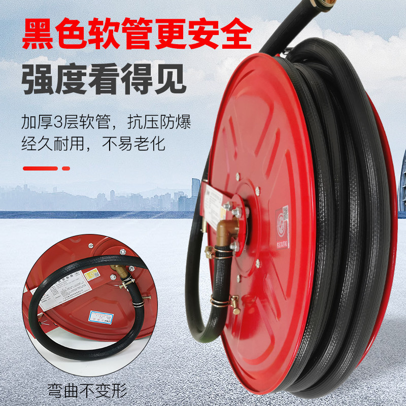 Black thickened fire hose reel water dragon 20 meters self-rescue water belt fire hydrant box turntable lightweight ball valve fittings