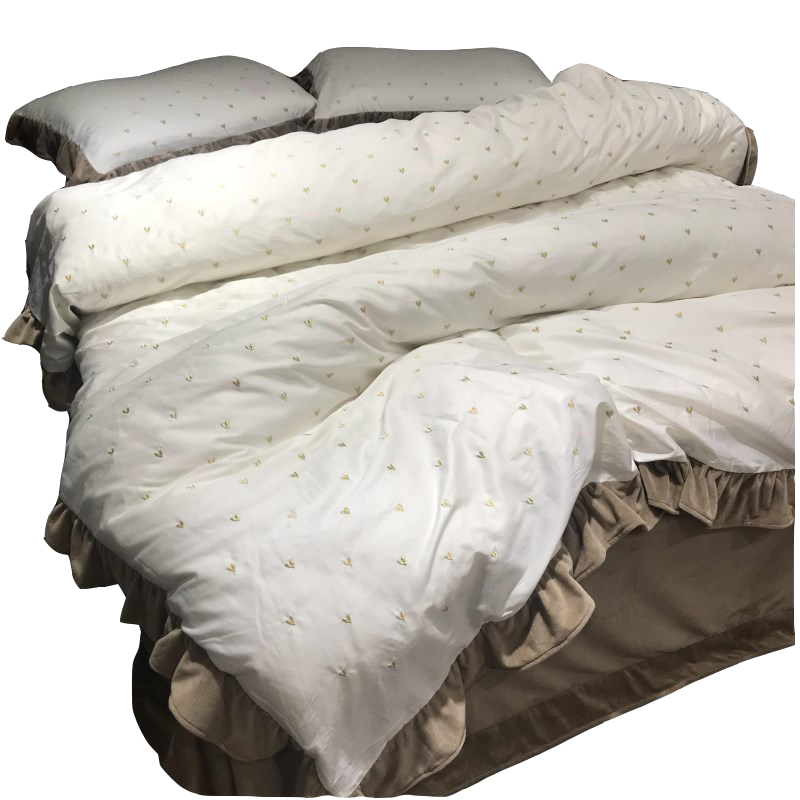 A cotton B flannel love bed four-piece double-sided cotton plus velvet winter coral fleece bed sheet quilt cover princess style