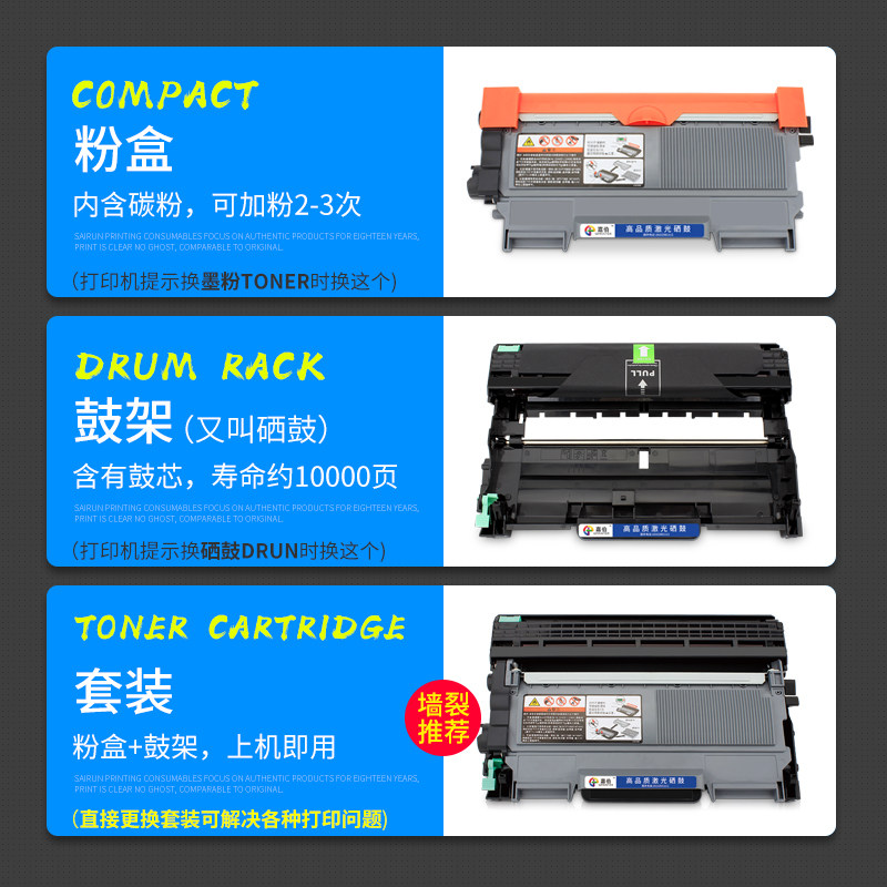Standard capacity powder box (print 2600 pages Buy 10 send 1) Large capacity powder box (print 5200 pages Buy 5 sends 1) separate drum frame needs to be used with a powder box (print