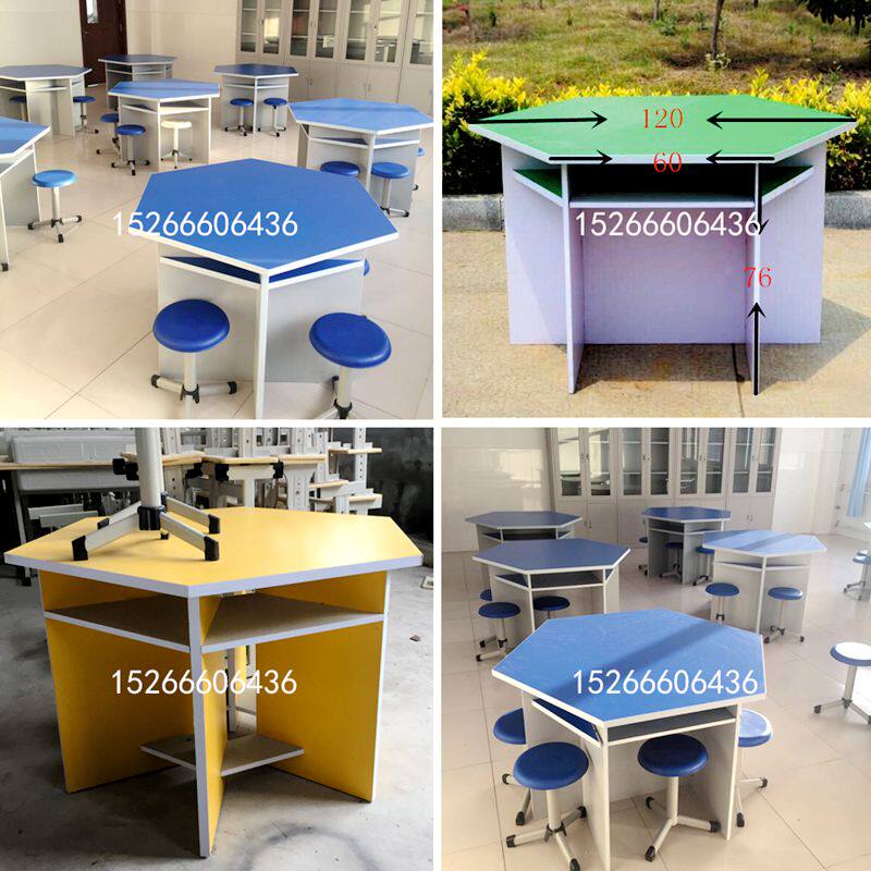 Student hexagonal table hexagonal octagonal table experimental table school desk chair color combination multi-person computer desk