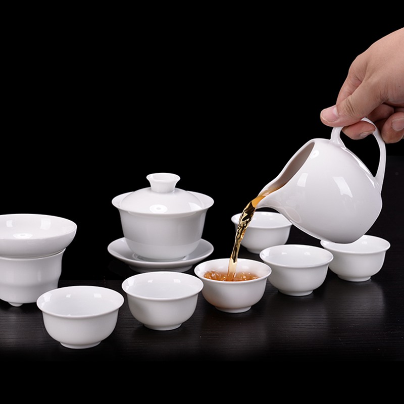 Defied high white porcelain cover bowl tea cup tea bowl large number tea set ceramic green flower porcelain tea bowl three-only bowl hand grip pot-Taobao