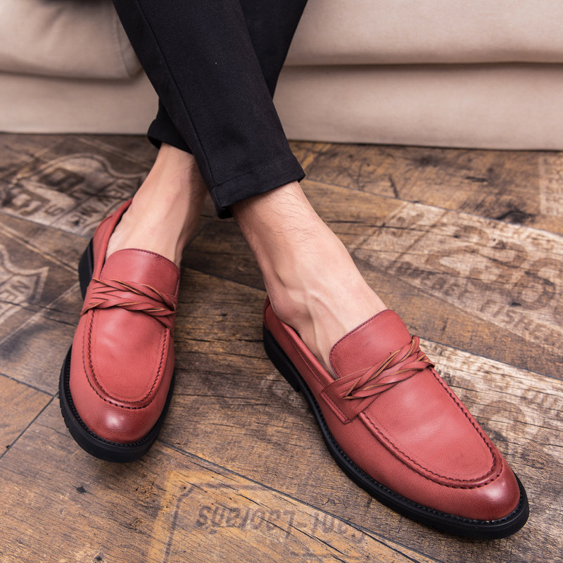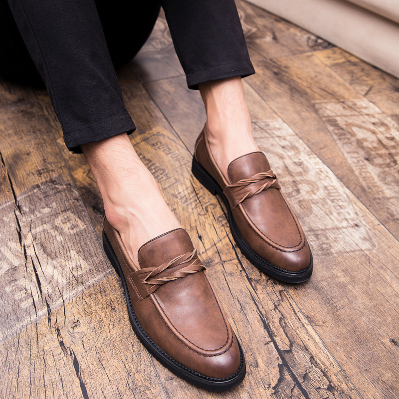 Fall men's pointy leather shoes Inn Korean version individuality One foot pedal casual heightening leather shoe retro hair stylist Tide Shoes