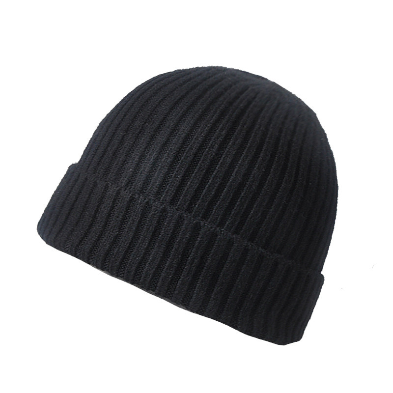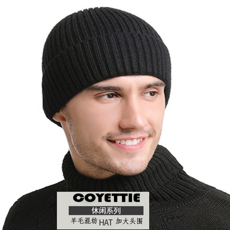 Wool blended wool hat black 62-68CM big head circumference winter hat single layer thickening tide hat knitted warm men