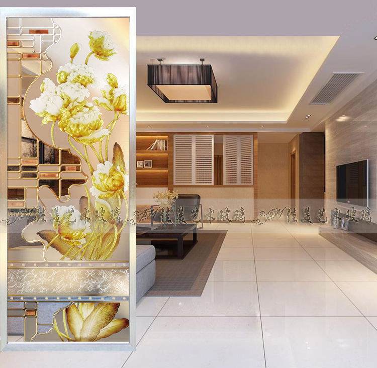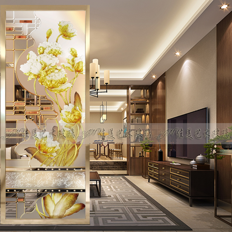 Art Glass Partition Living Room Screen Genguan Background Wall Steel Sculpted Frosted Chinese Fashion Tulip