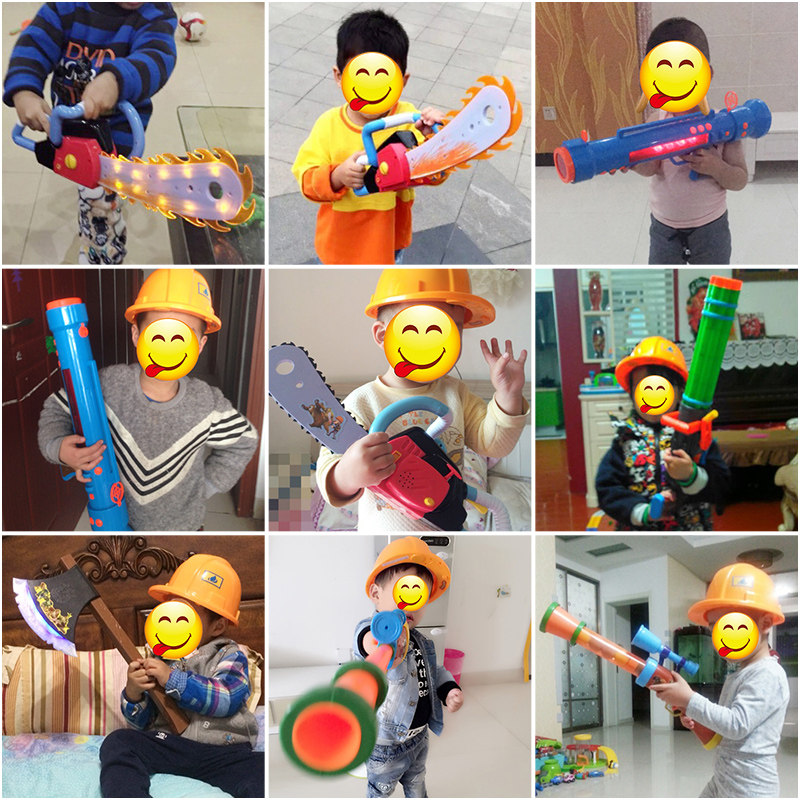 Bear infested bald strong toy chainsaw set logging saw children's tree cutting saw electric toy gun boy