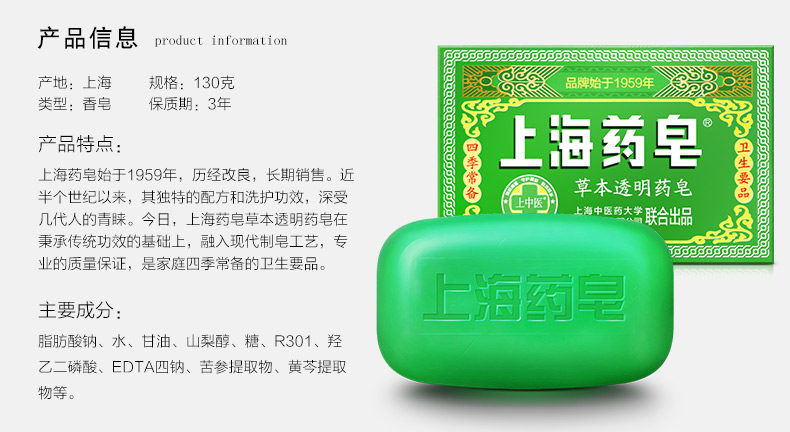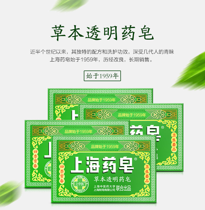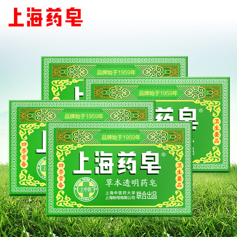 Shanghai Drug soap herbal medicine transparent medicine soap 130 gr 4 pieces for children handwashing soap cleaning medicine soap