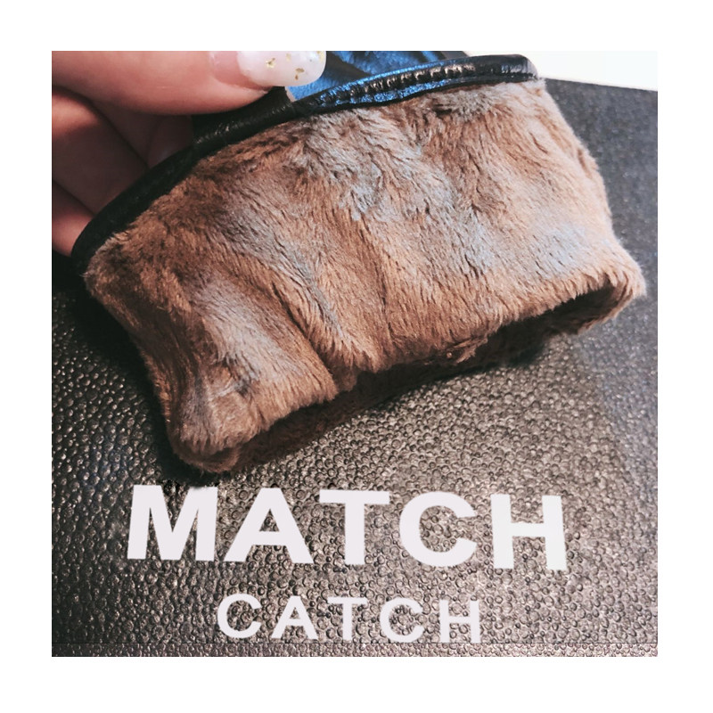 Leather gloves men's winter sheepskin plus velvet padded warm cold wind driving repair hand outdoor cycling motorcycle touch screen