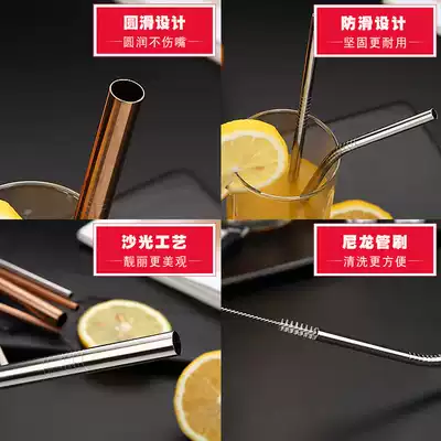 304 stainless steel straw Iron metal pearl milk tea coarse straw Fine elbow Environmental protection straw Hard fall-proof portable box