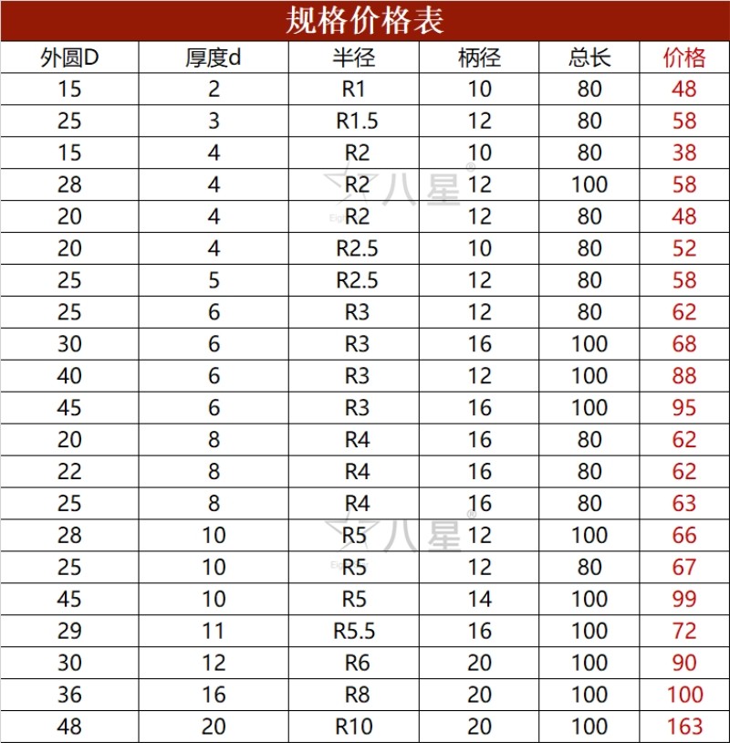 Blade diameter 15 thick 2R1 Shank 10 Total length 8025*3 R1 5 Shank 12 Total length 8015*4 R2 Shank 10 Total length 8020*4 R2 Shank 12 total length