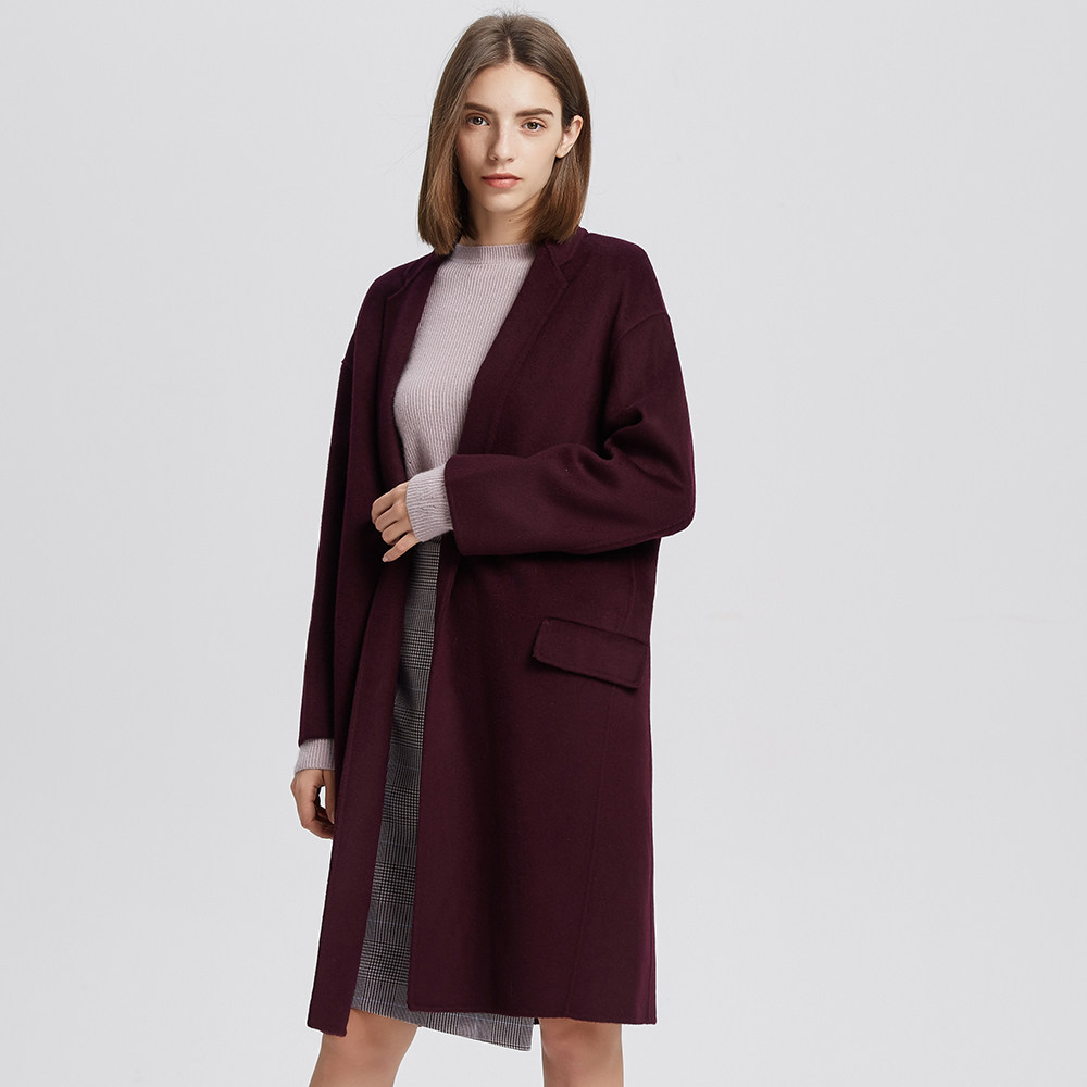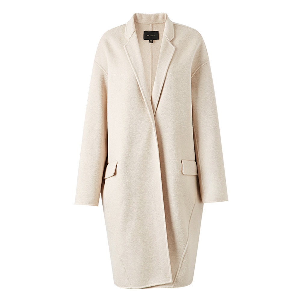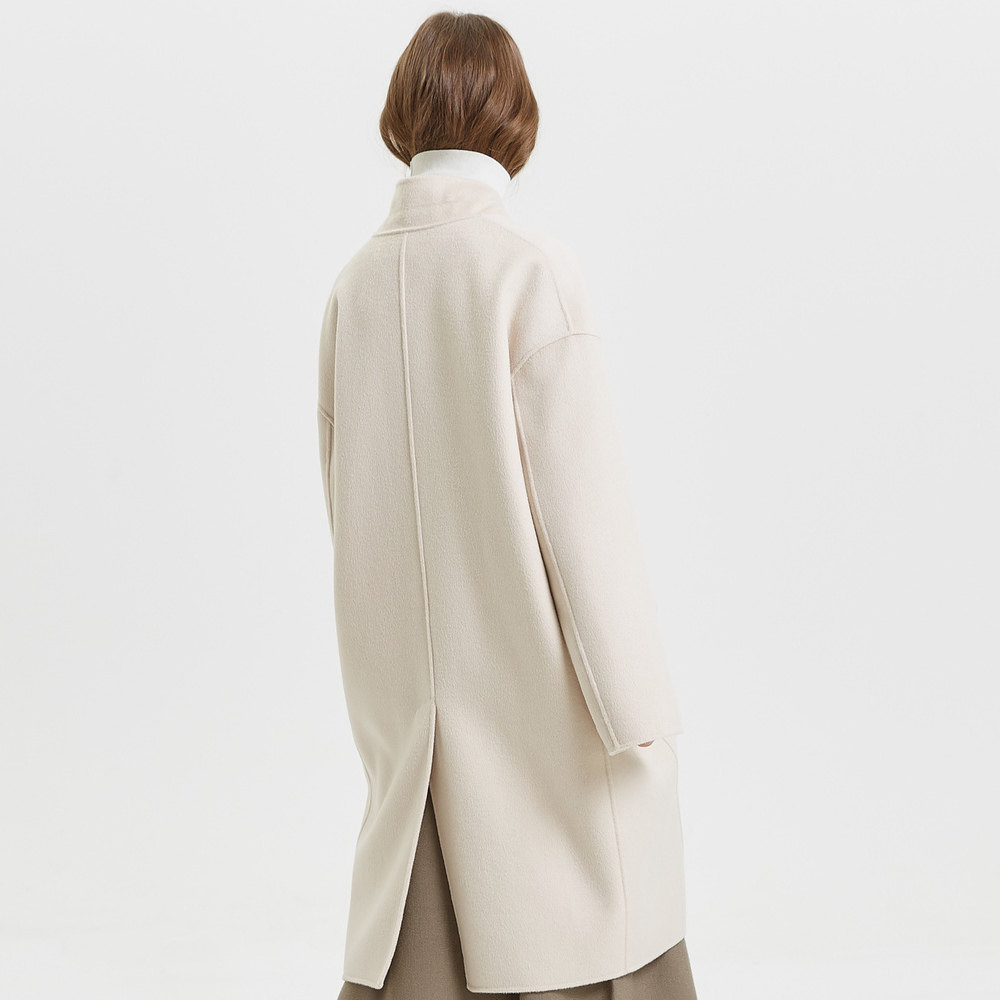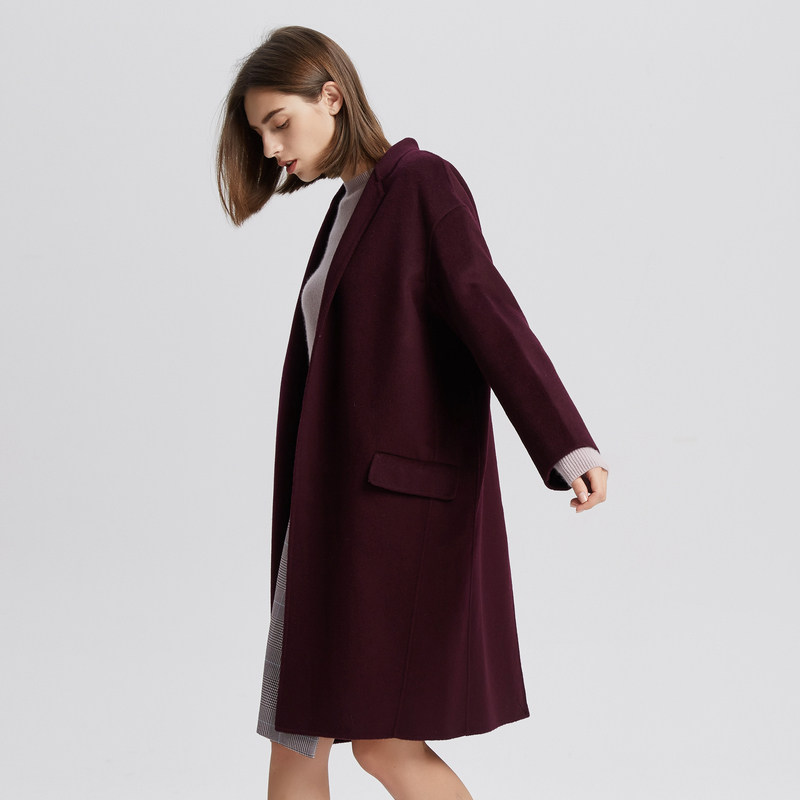 Cashmere wool blend MECITY women's off-shoulder Hepburn wind small man medium and long version wool coat coat