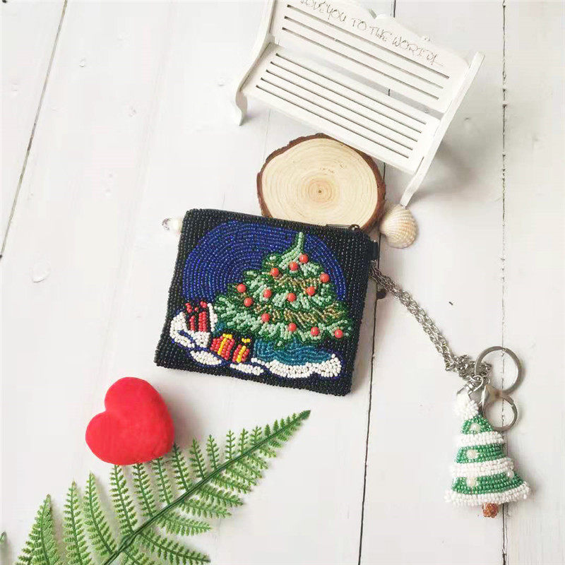 Shake-up with the same creative hand carry wallet handmade string Jewel Christmas tree coin wallet Christmas gift card bag