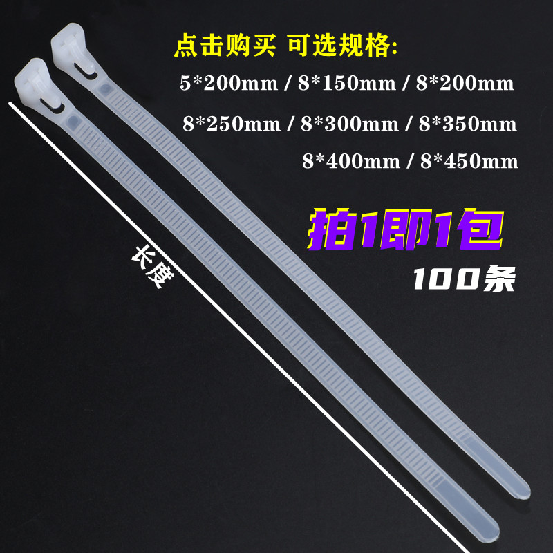 Live buckle loose nylon cable tie 8*400mm Re-use harness fixed buckle increase the binding cable tie seal 5