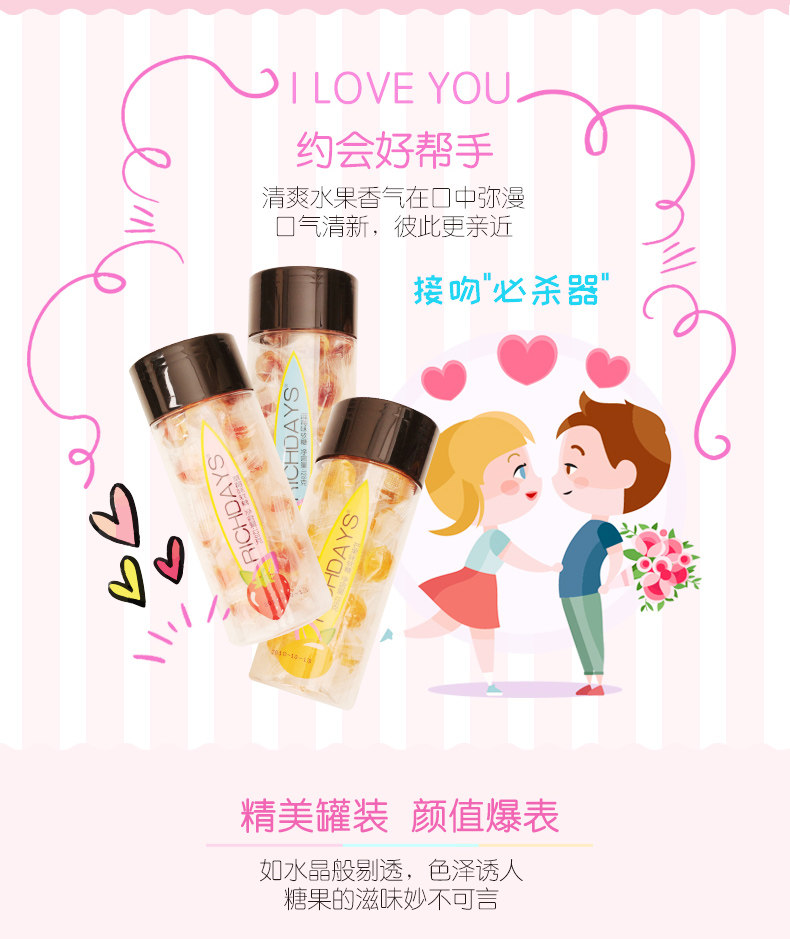 Richdays burst Crystal fudge 3 canned mixed fruit flavor sandwich candy Net red dating single pack