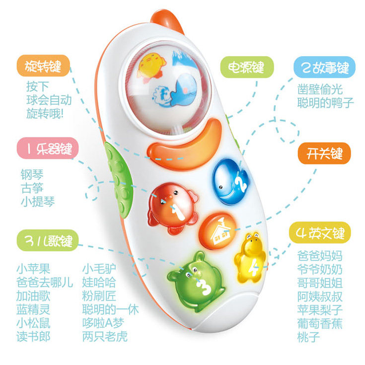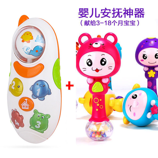Rotating earth bites anti-drool baby boy 0-3 years 6 Music emulation 1 baby phone Puzzle 8 Months Girl