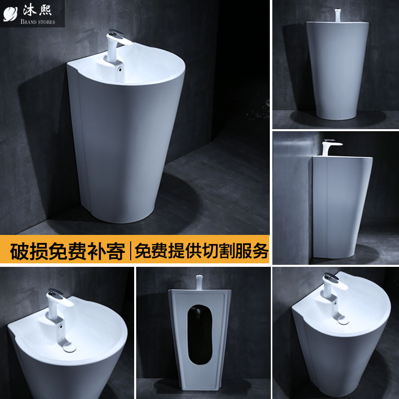 Nordic integrated ceramic column basin one-piece washbasin powder room washbasin balcony outdoor courtyard washbasin