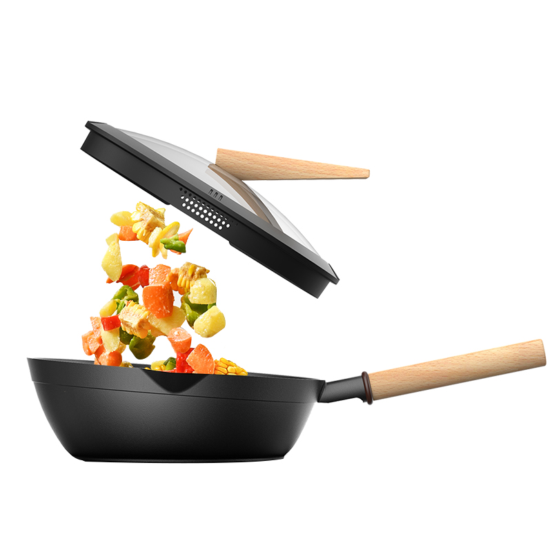 26CM frying pan 16CM milk pan Bamboo cutting board Kitchen knife function knife