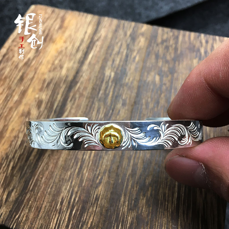 Silver Genesis High Bridge Our Lang Goros Tang Grass Golden Flying Bird bracelet Yu Wenle Zhu One dragon retro 925 pure silver
