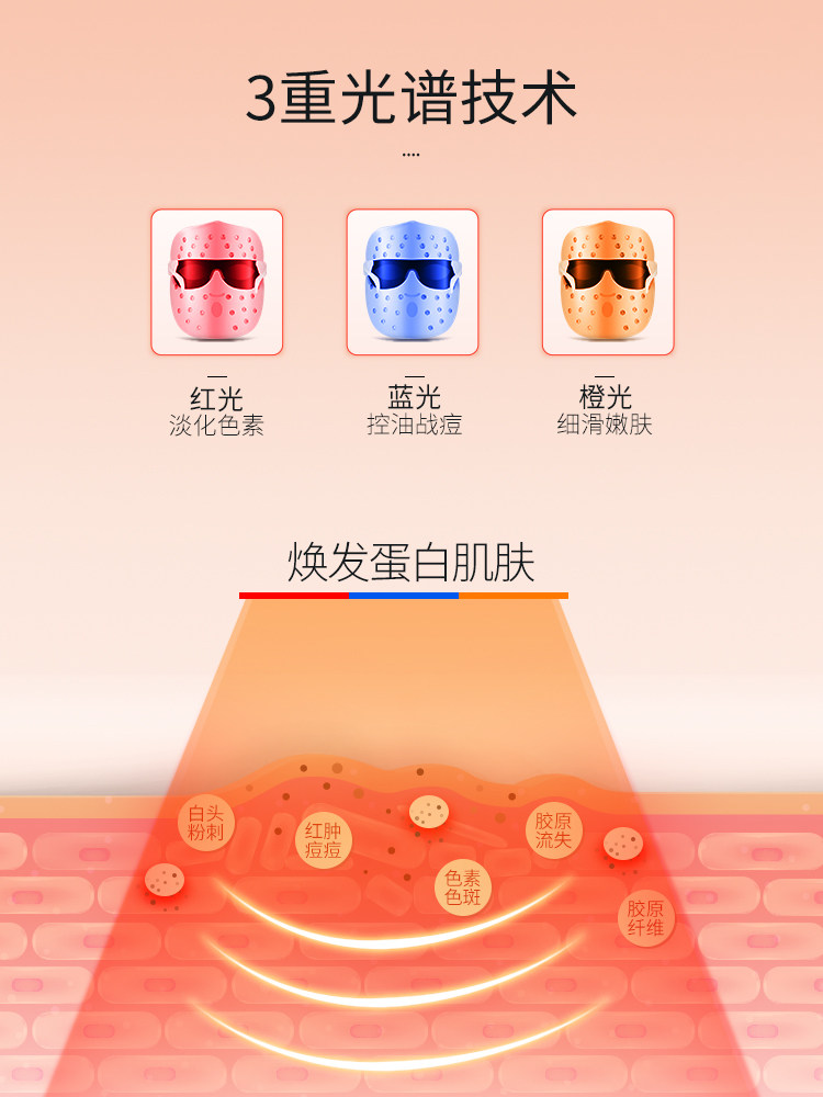 Golden Rice Mask to Import Photonic Skin Gauge Led Red Light Blue Light Mask Home Face Acne Spectrum Cosmetic