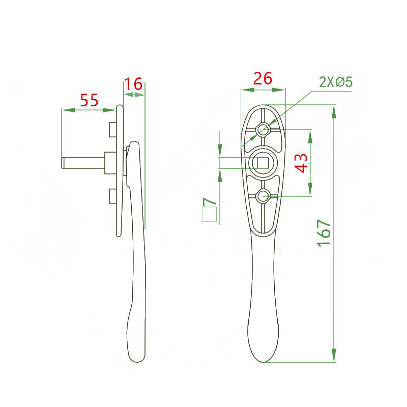 King Kong mesh screen curtain integrated broken bridge aluminum alloy casement window screen window handle folding door sword-shaped thin flat square steel handle