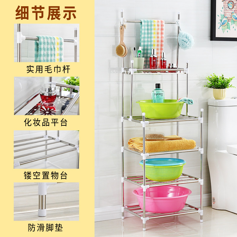 Stainless steel washbasin rack bathroom washbasin shelf floor-to-ceiling storage rack towel rack multi-functional rural storage rack